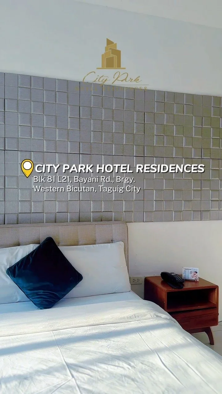 Welcome to City Park Hotel Residences, where elegance and luxury meet comfort. Located on Bayani Road near Bonifacio Global City and McKinley Hill, our spacious hotel is an ideal choice for both business and leisure travelers, whether for short or extended stays. Each room is thoughtfully designed with stylish furnishings, flat-screen TVs, and complimentary Wi-Fi, ensuring a comfortable and relaxing stay in Taguig City. City Park Hotel Residences is fully compliant with all required government regulations, including valid business permits, and is DOT-accredited.